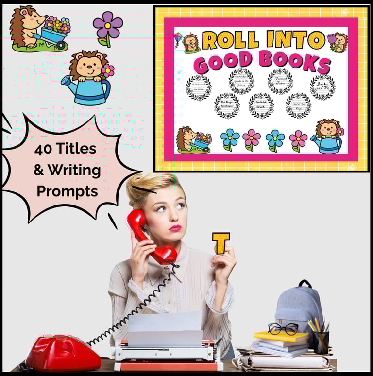 This colorful board kit has writing prompts to get your students engaged in creative writing. Older students will appreciate the cheerful hedgehog and bunny characters, without babyish clip art. There are multiple border options, letter blocks, and a list of 35 writing prompts with titles.